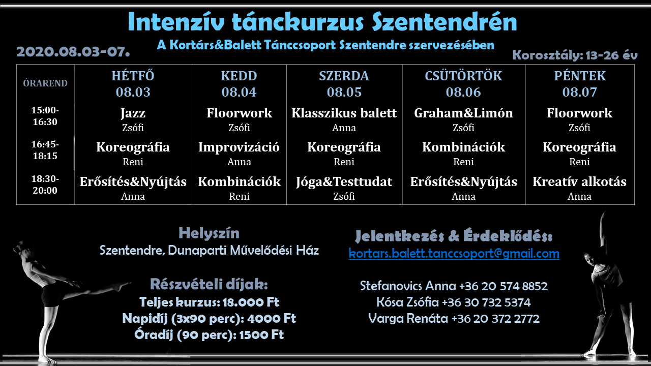 Idén is több táborral készültünk a kisebbeknek és nagyobbaknak egyaránt. 5-12 éves korig 4 napos napközis kreatív táborokkal várjuk a gyermekeket. Közös alkotás, különböző tánctechnikákkal való ismerkedés, kézműves foglalkozás, sok játék és mozgás vár a jelentkezőkre. 13 éves kor felett a kortárs- és moderntánc kurzuson, az intenzív táncworkshopon, valamint 1 és 2 napos kreatív, alkotó […]
